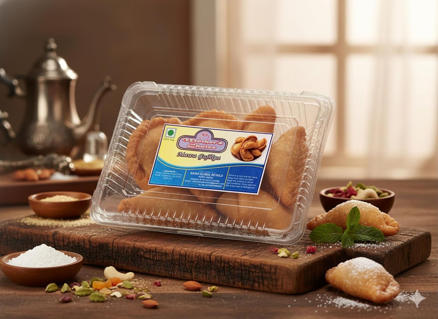 - Each Gujhiya is prepared in a hygienic facility, following traditional methods and packed securely to retain freshness, texture, and flavor during delivery.